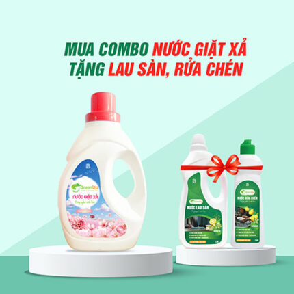 Combo nước giặt xả tặng nước lau sàn và nước rửa chén công nghệ sinh học GreenUp