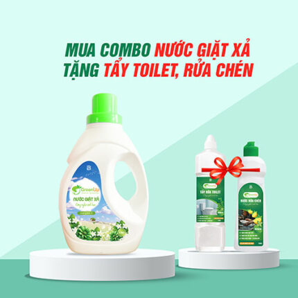 Combo nước giặt xả tặng tẩy rửa toilet và nước rửa chén công nghệ sinh học GreenUp