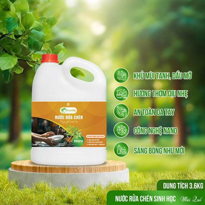 NƯỚC RỬA CHÉN HƯƠNG QUẾ CÔNG NGHỆ SINH HỌC GREENUP 3,6KG – LỰA CHỌN HOÀN HẢO CHO GIAN BẾP XANH SẠCH CỦA BẠN!